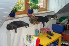 Als absoluter Schmusekater in unserer Familie war er anhänglich bis zur Aufdringlichkeit. Es gibt kaum ein Kinderfoto, das in unserer Wohnung aufgenommen wurde, auf dem Leonardo nicht auch mit zu sehen ist. Und in seiner Rolle als lebendige Puppe war er nicht zu überbieten. ![]() ![]() ![]()
